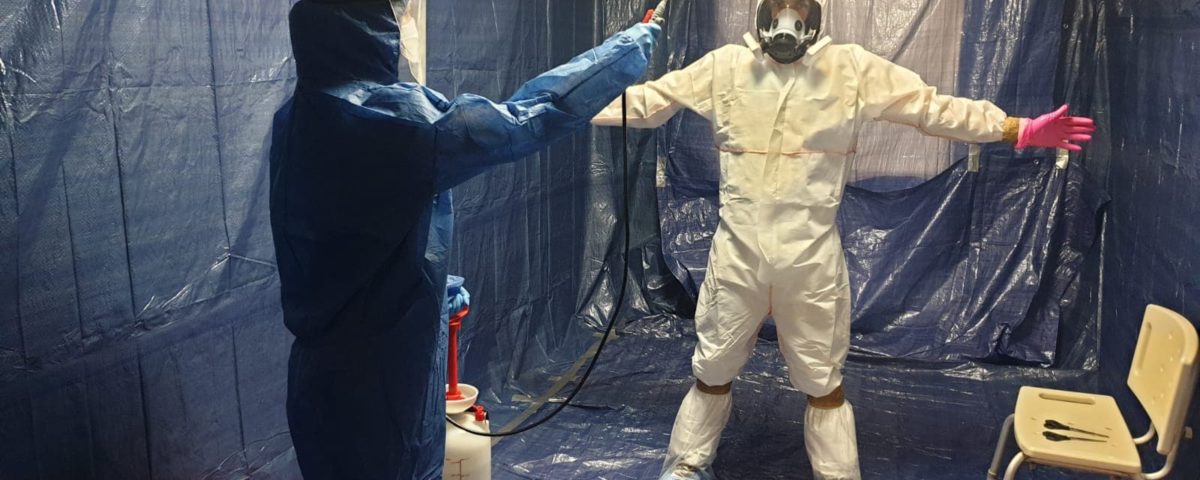 „Jeśli chodzi o nasze działania na miejscu, to są one prowadzone w pełnym zabezpieczeniu ochrony biologicznej. Po każdym wyjściu ze strefy, dokonujemy dekontaminacji w specjalnie do tego celu przygotowanej prowizorycznej śluzie. Udało nam się oddzielić i w pełni zdezynfekować oraz wyozonować przy pomocy specjalistycznej firmy, jedną część budynku w której przez całą dobę pracuje i stacjonuje personel Zintegrowanej Służby Ratowniczej. To tutaj znajduje się nasze Centrum Dowodzenia i stąd mamy bezpieczne wyjście i wejście na placówkę, przez śluzy, które utworzyliśmy w budynku. Na miejscu całodobowo, mamy również swojego lekarza, który jest w trakcie odbywania stażu i obecnie pomaga nam w tym ośrodku. We wtorek, dołączy do nas drugi lekarz stażysta. Ponadto na terenie placówki w systemie rotacyjnym pracują ratownicy medyczni, pielęgniarki, pielęgniarze i ratownicy kwalifikowani. Nie sposób tutaj nie wspomnieć o personelu ŚCODiR, który od kilku, a czasami kilkunastu dni przebywa na terenie placówki i z oddaniem opiekuje się pensjonariuszami. To świetni profesjonaliści, którzy najlepiej znają swoich pacjentów i pomimo ogromnego zmęczenia fizycznego i psychicznego z pełnym zaangażowaniem opiekują się podopiecznymi. Pomimo trudnej sytuacji, pensjonariusze są zaopiekowani, a ośrodek funkcjonuje – dodaje Dawid Burzacki ze Zintegrowanej Służby Ratowniczej.